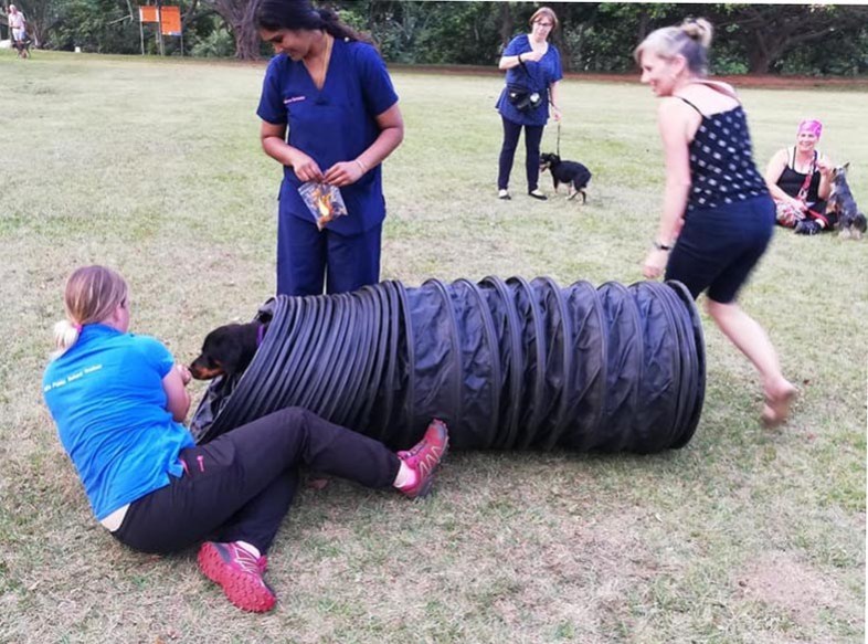 The cost is R300 per 10 week course, from 5:30 to 6:30 for the puppy class and it's held at the Amanzimtoti Sports Club – (Lords & Legends).